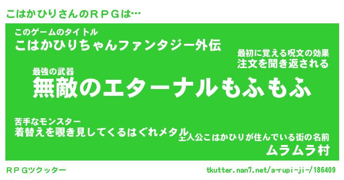 | ファンタジー風あだ名 | 『コハフェル』『エターナルコハカヒリー』 |