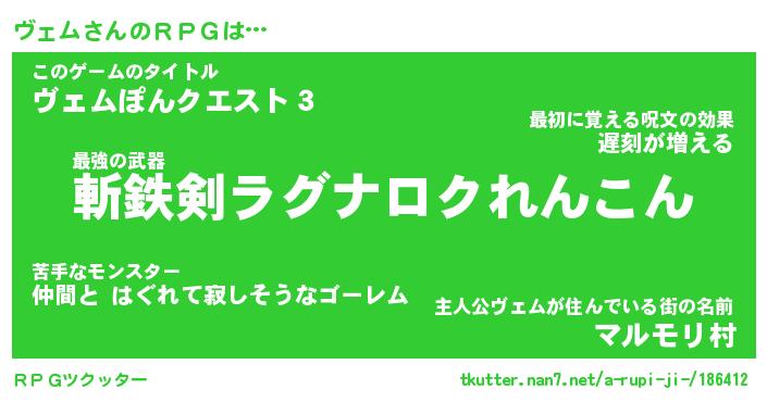 | 男性向けラノベタイトル風あだ名 | 『ヴェムの憂鬱』 |