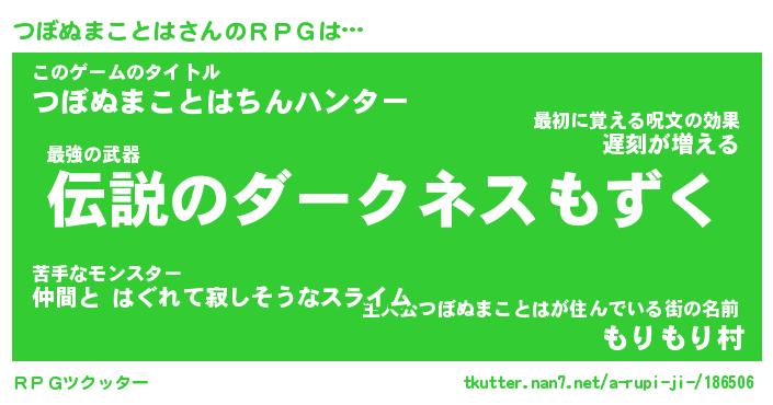 | 男性向けラノベタイトル風あだ名 | 『つぼぬまことはの憂鬱』 |