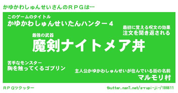 | ヘコむあだ名 | 『かゆっふぃ~』『つくし』『かゆお』 |