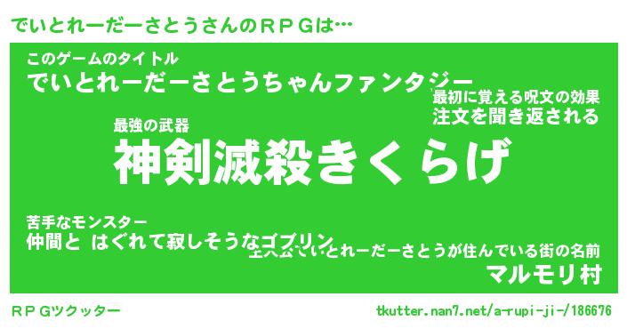 | ファンタジー風あだ名 | 『デイフェル』『ファントムデイス』 |