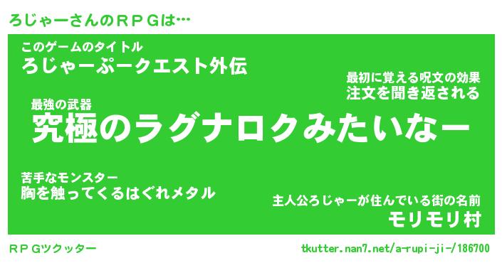 | 伝説のあだ名 | 『不死鳥の竜騎士ろじゃー』 |