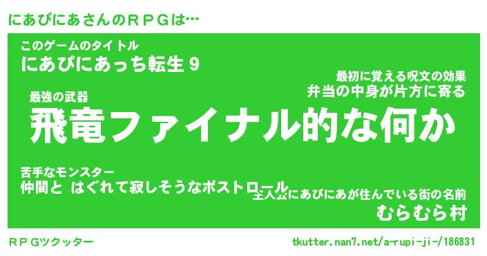 | 伝説のあだ名 | 『封印されし竜騎士にあぴにあ』 |
