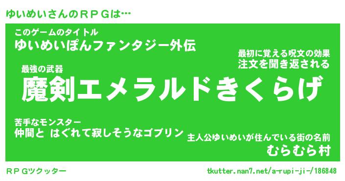 | ファンタジー風あだ名 | 『ユイフェル』『エターナルユイメイー』 |
