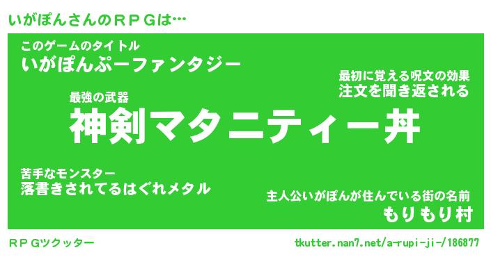| ファンタジー風あだ名 | 『イガフェル』『エターナルイガポンー』 |