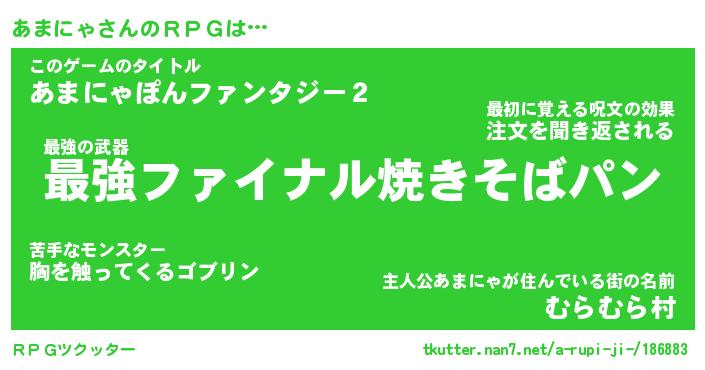 | ファンタジー風あだ名 | 『アマフェル』『エターナルアマニャー』 |