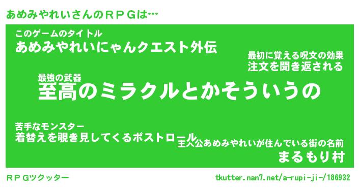 | ヘコむあだ名 | 『あめにー』『牛乳』『あめぷりん』 |