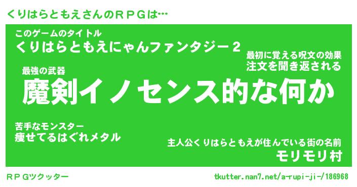 | 胡散臭い通販商品みたいなあだ名 | 『必ず成功する霊験あらたかなお札…その名も「くりはらともえ」』 |