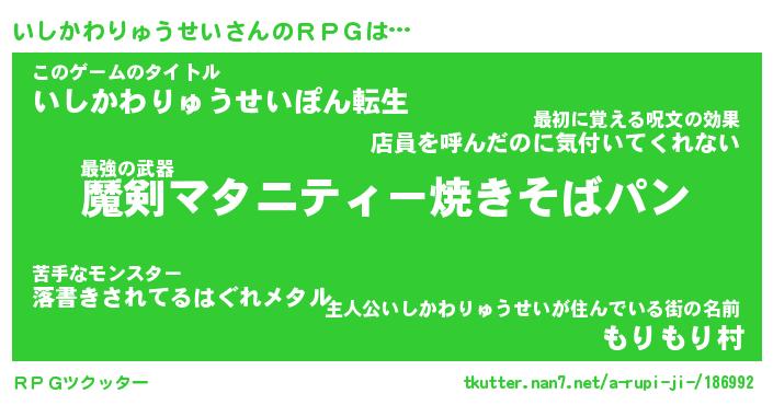 | 胡散臭い通販商品みたいなあだ名 | 『必ず成功する霊験あらたかなお札…その名も「いしかわりゅうせい」』 |