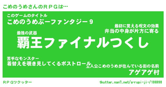| ファンタジー風あだ名 | 『コメフェル』『エターナルコメノウメー』 |