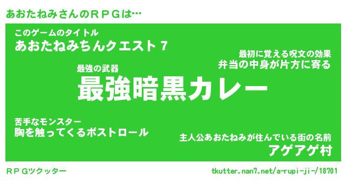 | 男性向けラノベタイトル風あだ名 | 『アオタネミアートオンライン』 |