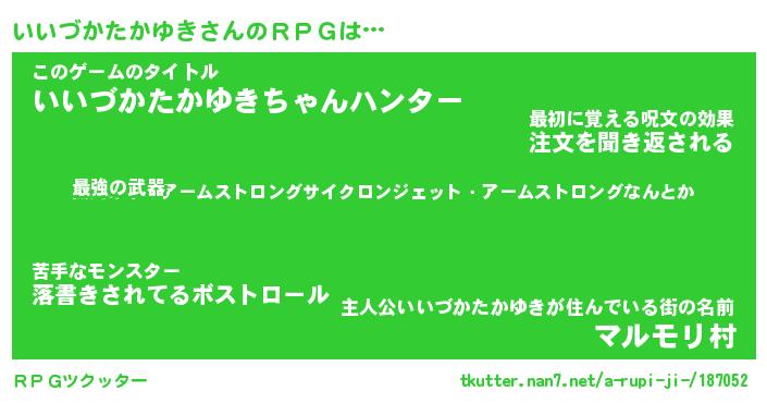 | 男性向けラノベタイトル風あだ名 | 『イイヅカタカユキアートオンライン』 |