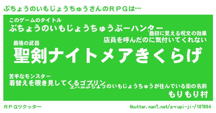 | 伝説のあだ名 | 『伝説のスナイパーぶちょうのいもじょうちゅう』 |