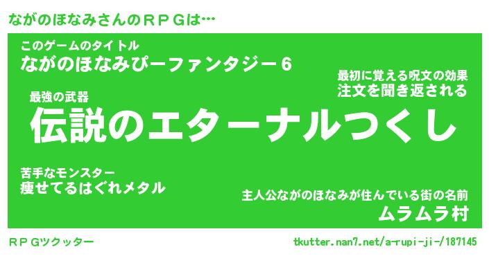 | ヘコむあだ名 | 『ながにゅー』『つくし』 |