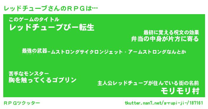 | 男性向けラノベタイトル風あだ名 | 『レッドチューブの憂鬱』 |