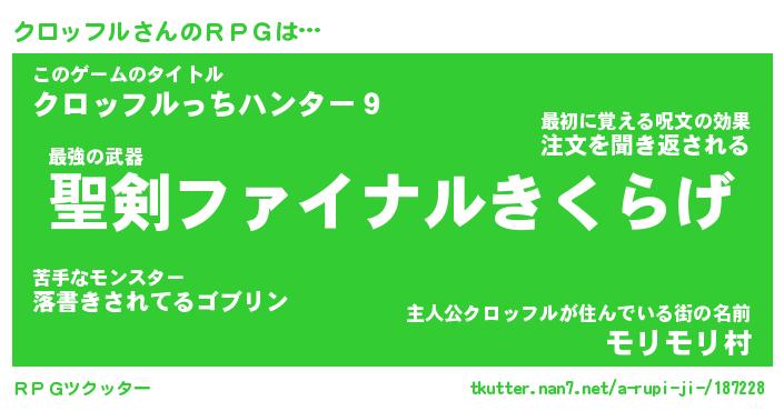 | ファンタジー風あだ名 | 『クロフェル』『エターナルクロッフルー』 |