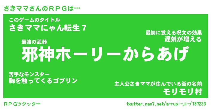 | ファンタジー風あだ名 | 『サキフェル』『エターナルサキママー』 |