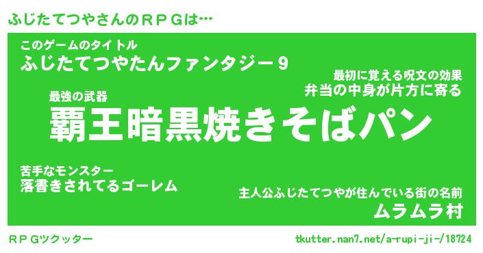 | 男性向けラノベタイトル風あだ名 | 『フジタテツヤアートオンライン』 |