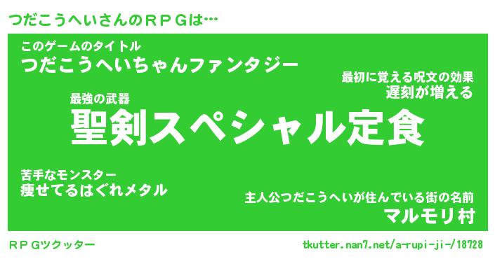 | 男性向けラノベタイトル風あだ名 | 『つだこうへいの憂鬱』 |