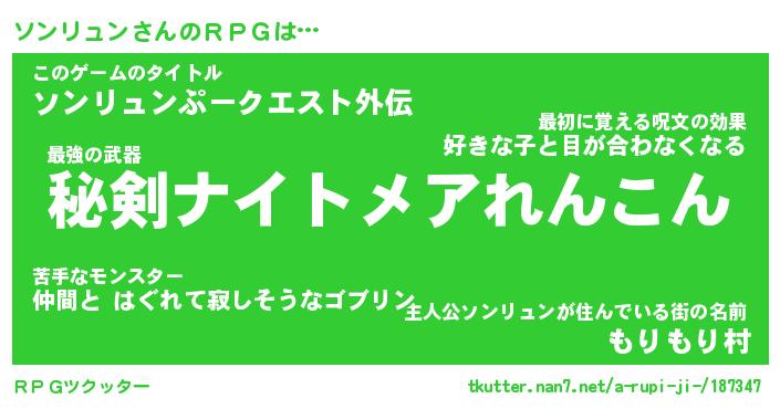 | ファンタジー風あだ名 | 『ソンフェル』『エターナルソンリュンー』 |