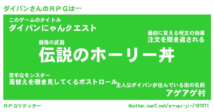 | 料理風あだ名 | 『節約★ダイパンと油揚げの玉子丼』 |