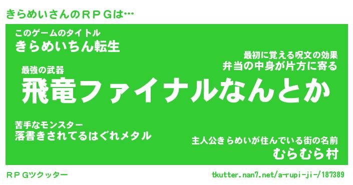 | 男性向けラノベタイトル風あだ名 | 『キラメイアートオンライン』 |