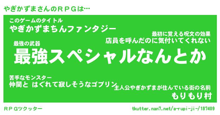 | ファンタジー風あだ名 | 『ヤギフェル』『エターナルヤギカズマー』 |