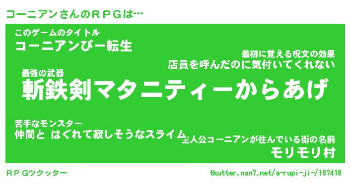 | ファンタジー風あだ名 | 『コーフェル』『エターナルコーニアンー』 |