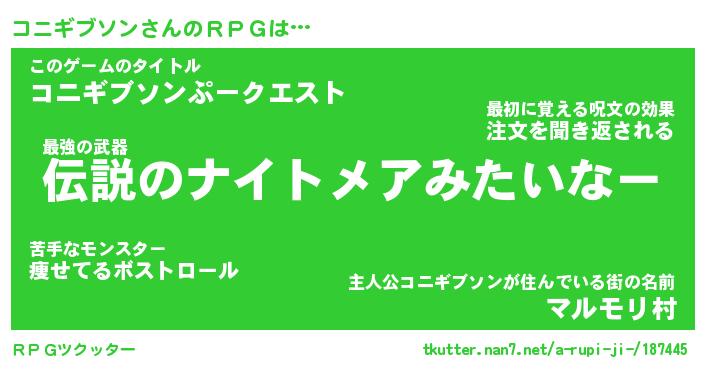 | 男性向けラノベタイトル風あだ名 | 『コニギブソンの憂鬱』 |