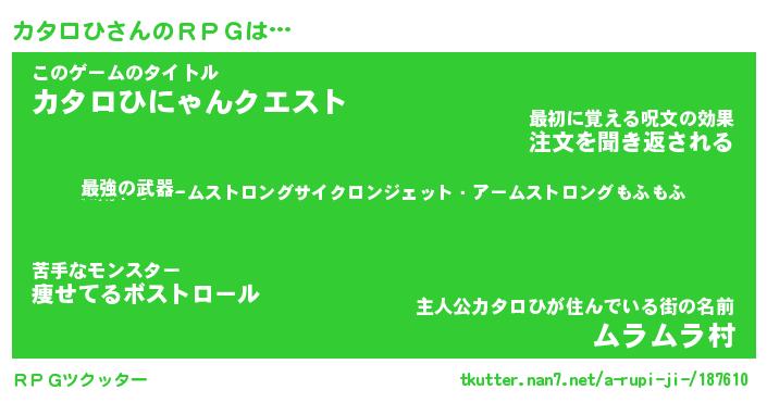 | ヒーロー風カッコイイあだ名 | 『スーパーカタロヒ』『暗黒騎士カタ』 |