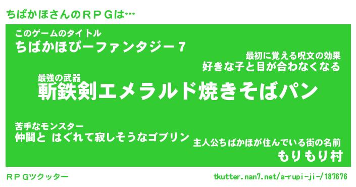 | ファンタジー風あだ名 | 『チバフェル』『エターナルチバカホー』 |