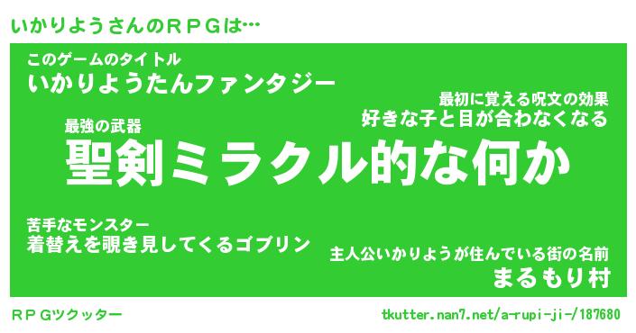 | 胡散臭い通販商品みたいなあだ名 | 『必ず成功するブレスレット…その名も「いかりよう」』 |