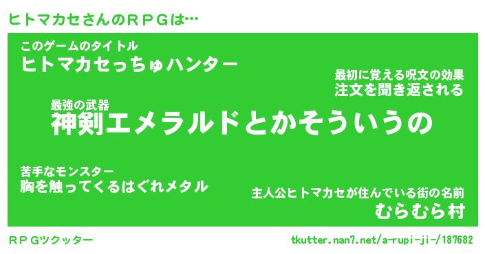 | ファンタジー風あだ名 | 『ヒトフェル』『エターナルヒトマカセー』 |