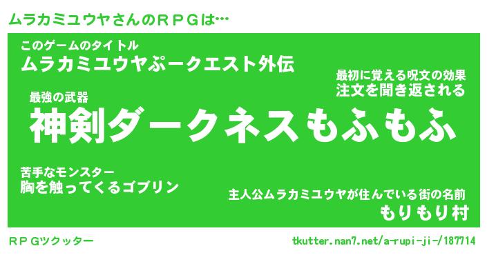 | 意味不明あだ名 | 『ペロリンムラカミユウヤ』 |