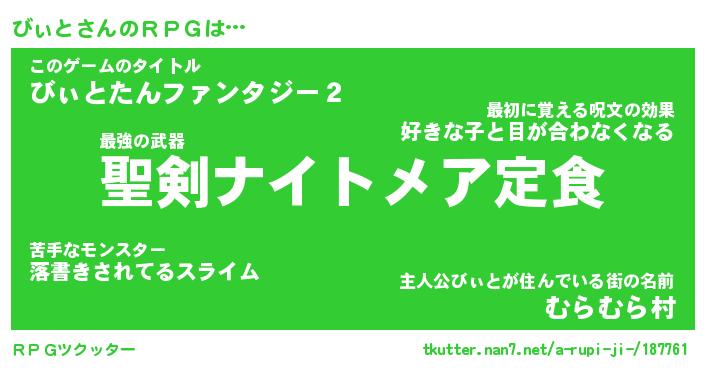 | ファンタジー風あだ名 | 『ビィフェル』『エターナルビィトー』 |