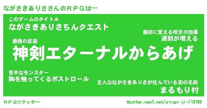 | 女子向けラノベタイトル風あだ名 | 『ながさきありさ姫と円卓の騎士』 |