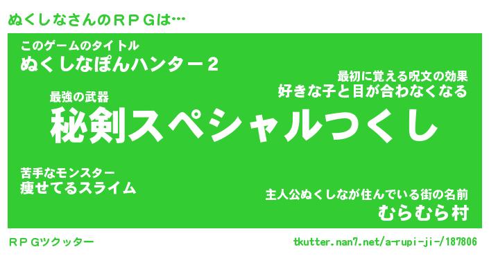 | ファンタジー風あだ名 | 『ヌクフェル』『エターナルヌクシナー』 |