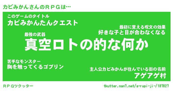 | 男性向けラノベタイトル風あだ名 | 『カビミカンアートオンライン』 |