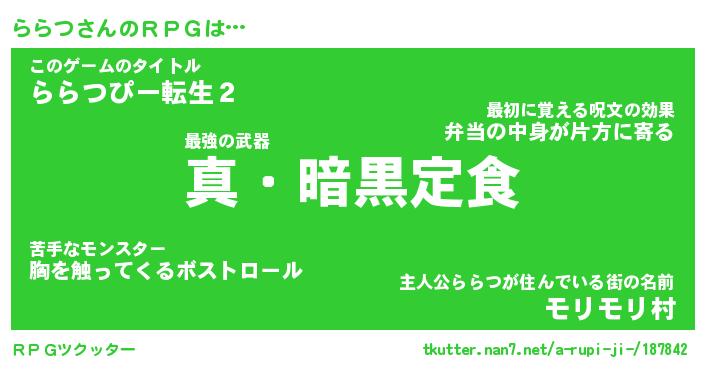 | 伝説のあだ名 | 『封印されし傭兵ららつ』 |