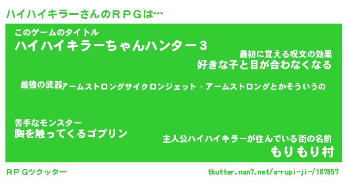 | ツイッター | ハイハイキラーさんのツイッターID『dendenmushi_man』 |