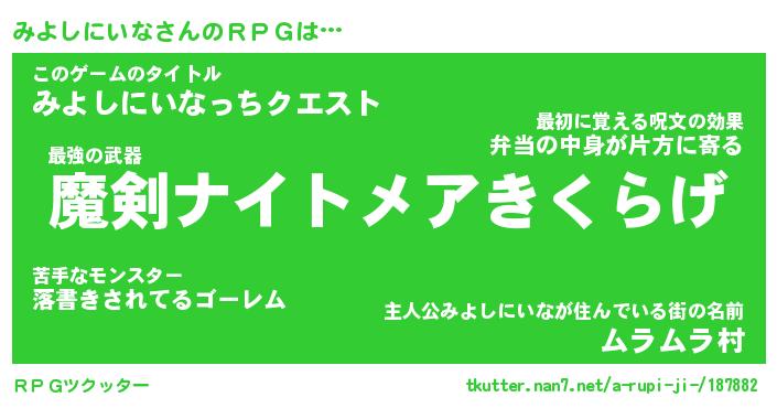 | 伝説のあだ名 | 『伝説のスナイパーみよしにいな』 |