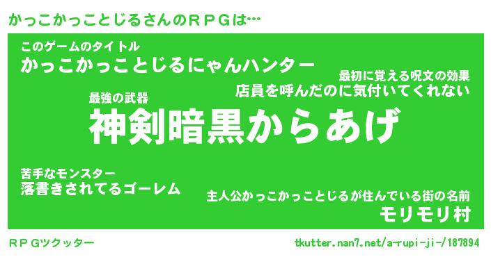 男性向けラノベタイトル風あだ名 | 『かっこかっことじるの憂鬱』 |