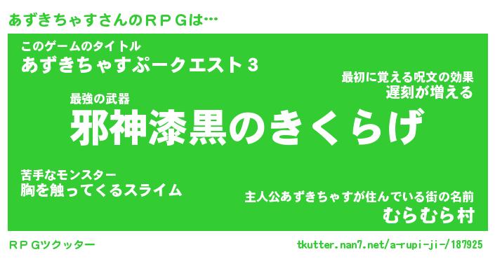 | 男性向けラノベタイトル風あだ名 | 『アズキチャスアートオンライン』 |