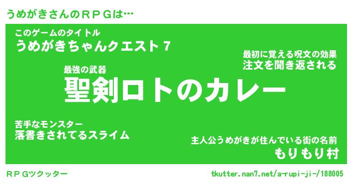 | 伝説のあだ名 | 『伝説の竜騎士うめがき』 |