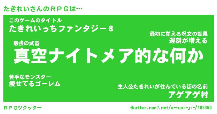 | 男性向けラノベタイトル風あだ名 | 『タキレイアートオンライン』 |