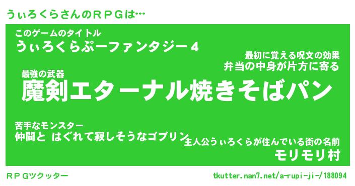 | 伝説のあだ名 | 『伝説の傭兵うぃろくら』 |