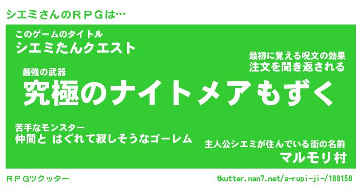 | 男性向けラノベタイトル風あだ名 | 『シエミの憂鬱』 |