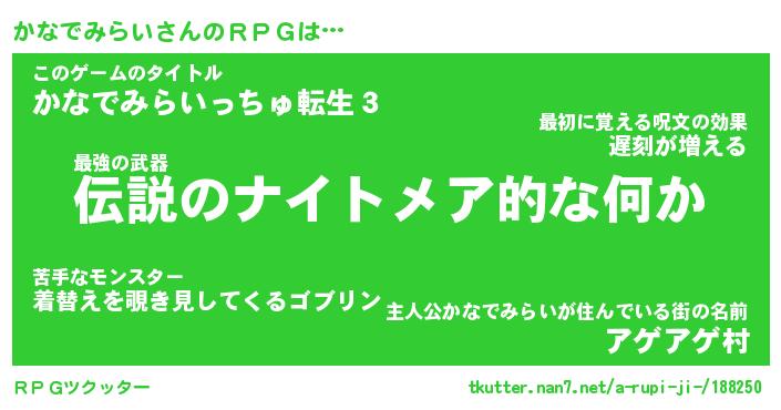 | 胡散臭い通販商品みたいなあだ名 | 『モテモテ間違いなし霊験あらたかなお札…その名も「かなでみらい」』 |