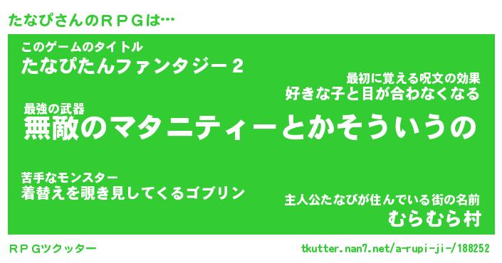 | 男性向けラノベタイトル風あだ名 | 『タナピアートオンライン』 |
