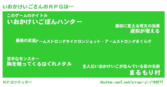 | 男性向けラノベタイトル風あだ名 | 『イオカケイゴアートオンライン』 |